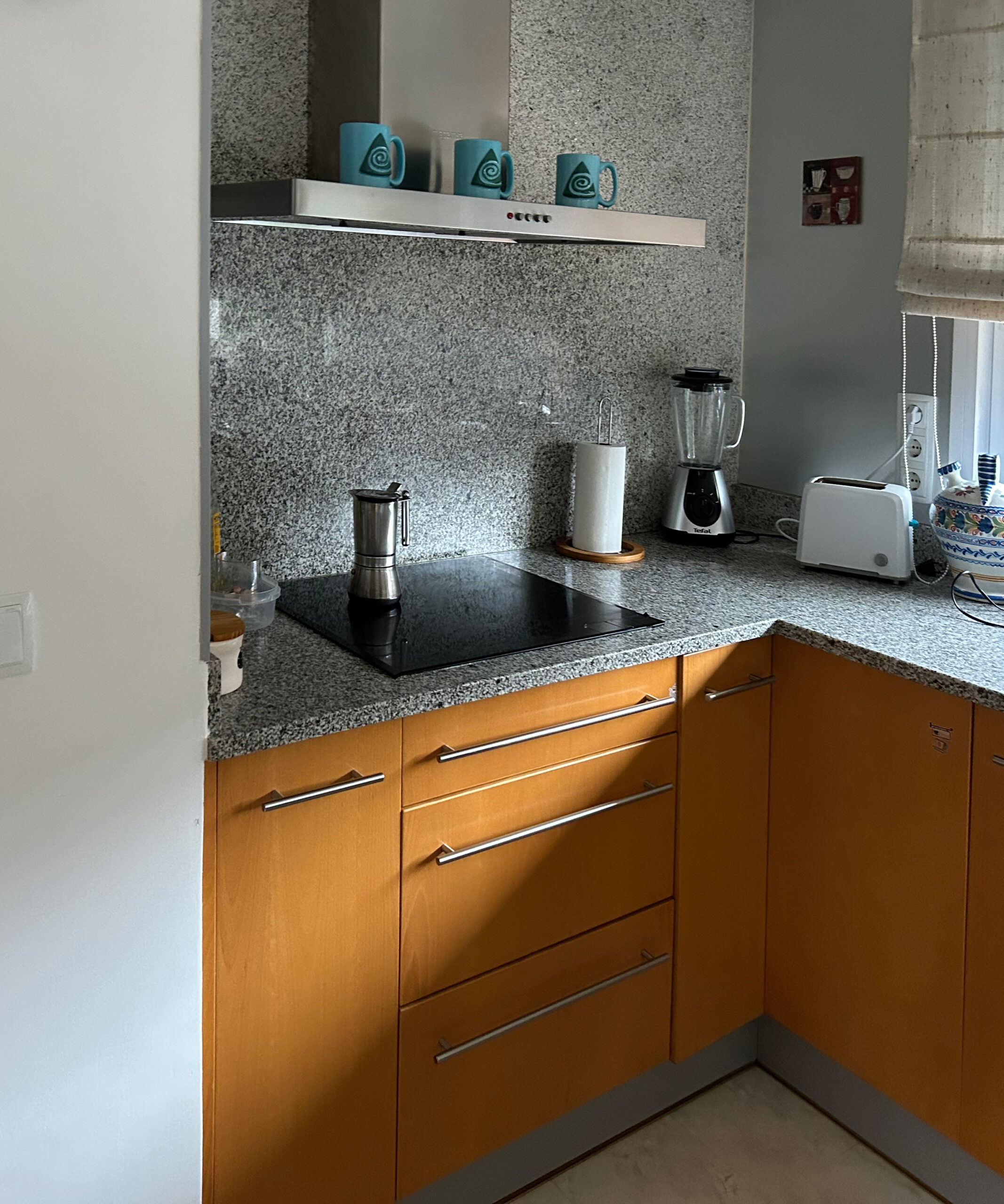 En la cocina, por ejemplo, la caldera se ha tenido que desplazar ligeramente para integrarla mejor en la composición prevista, optimizando su ubicación sin comprometer la funcionalidad del espacio.