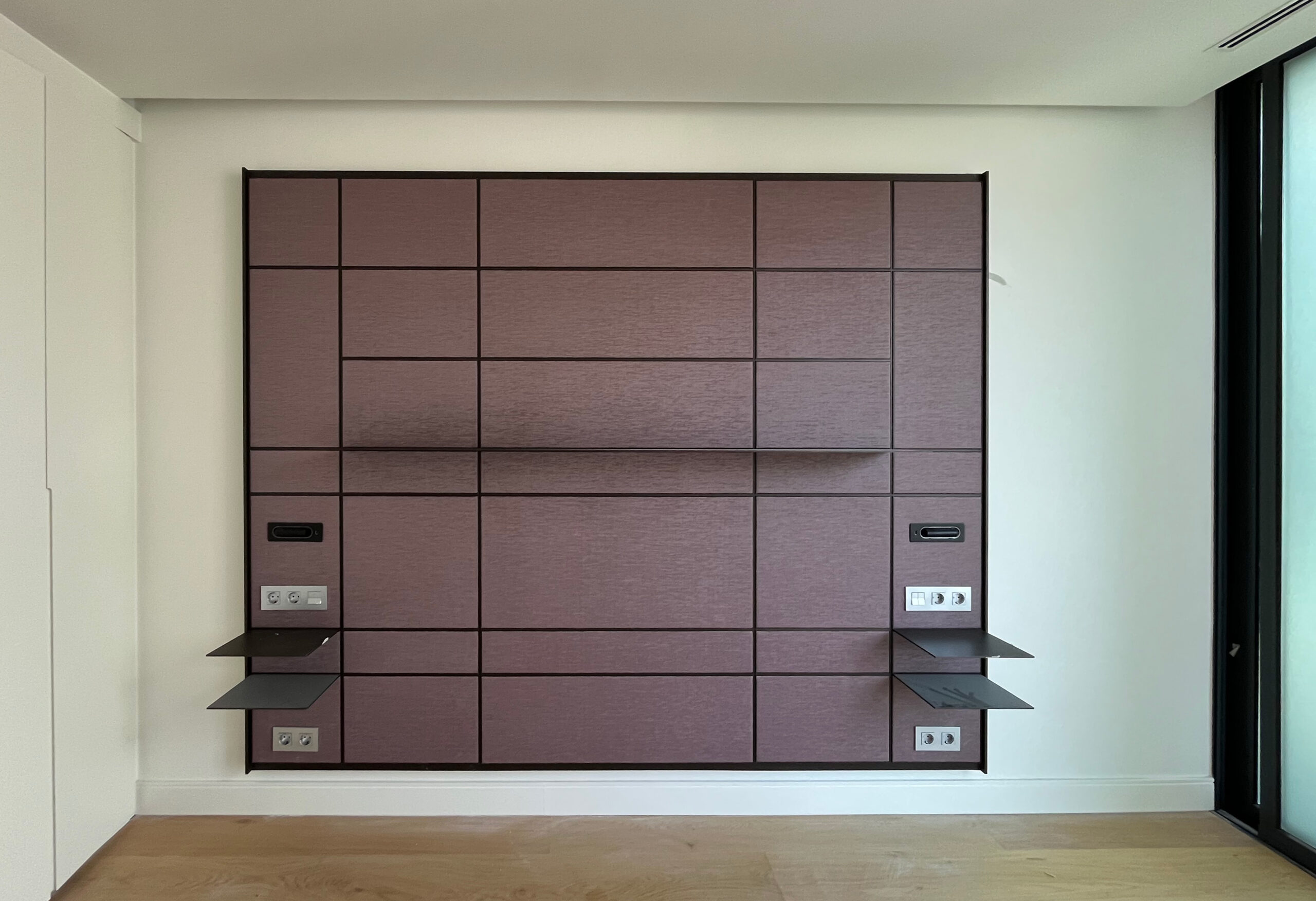 En el segundo dormitorio, el sistema Modulor de Rimadesio ha sido clave para articular un diseño que combina funcionalidad y elegancia. Se ha instalado un cabecero a medida que realza la estética del espacio con líneas limpias y acabados sofisticados.