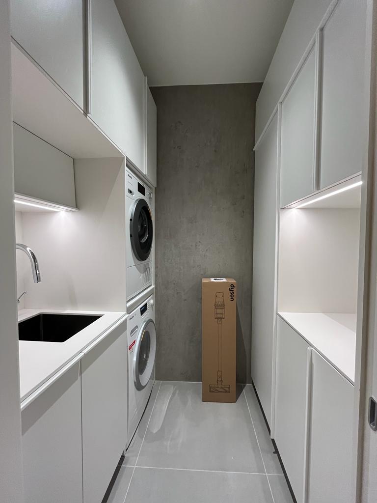 La zona de lavandería, lejos de ser un espacio secundario, fue concebida como una estancia funcional y cuidada al detalle.