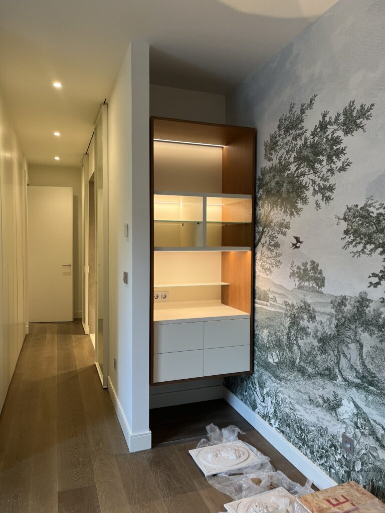 La carpintería y los elementos a medida son componentes fundamentales en el desarrollo de un interiorismo de alto nivel, y forman parte esencial de nuestros proyectos en Madrid. Su diseño y ejecución personalizada permiten optimizar espacios, aportar funcionalidad específica y dotar a cada estancia de una identidad única y sofisticada.