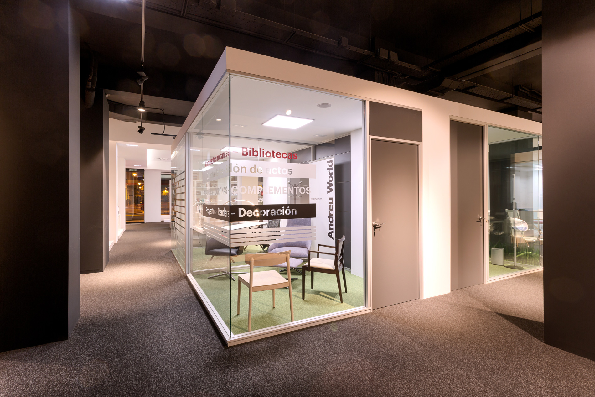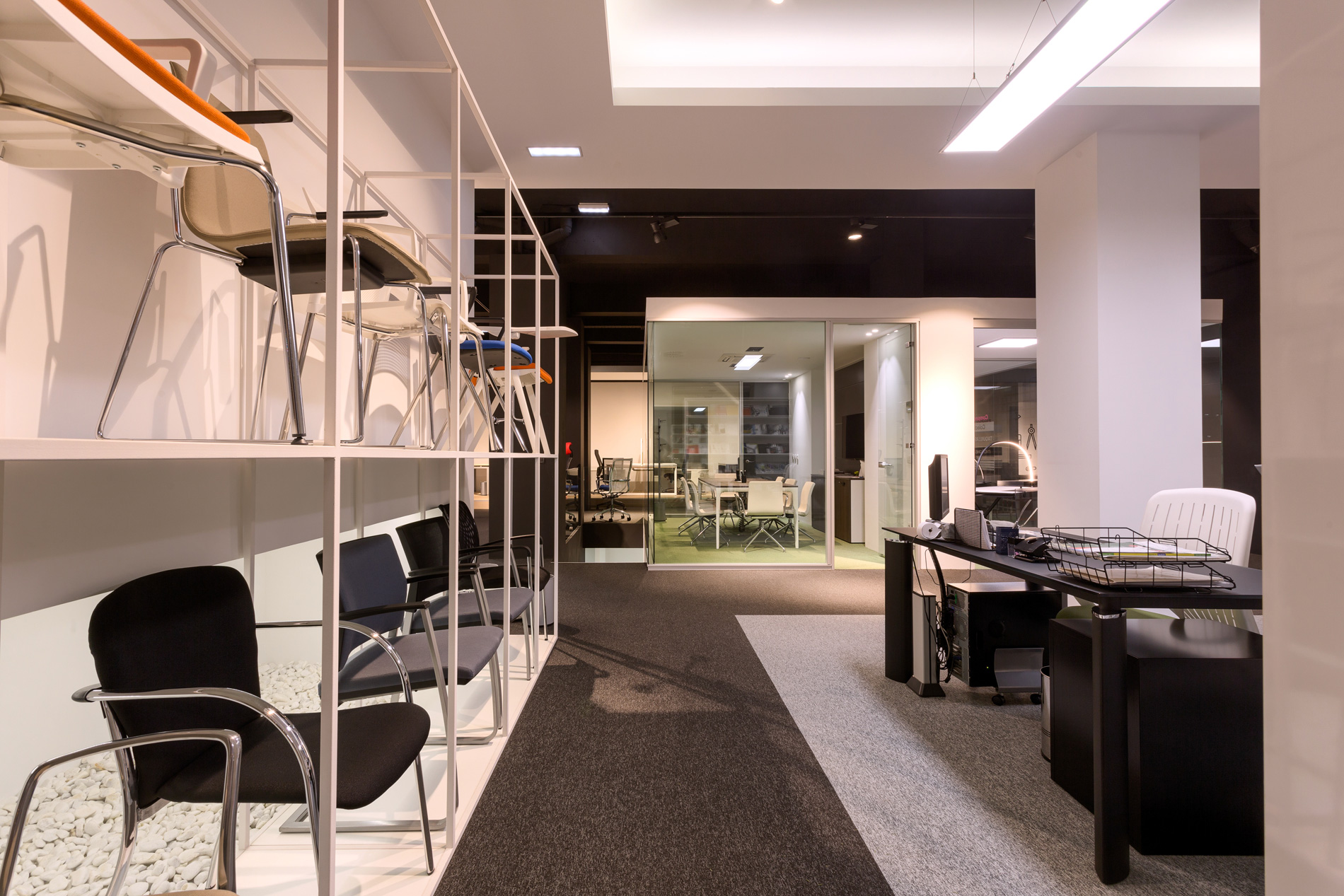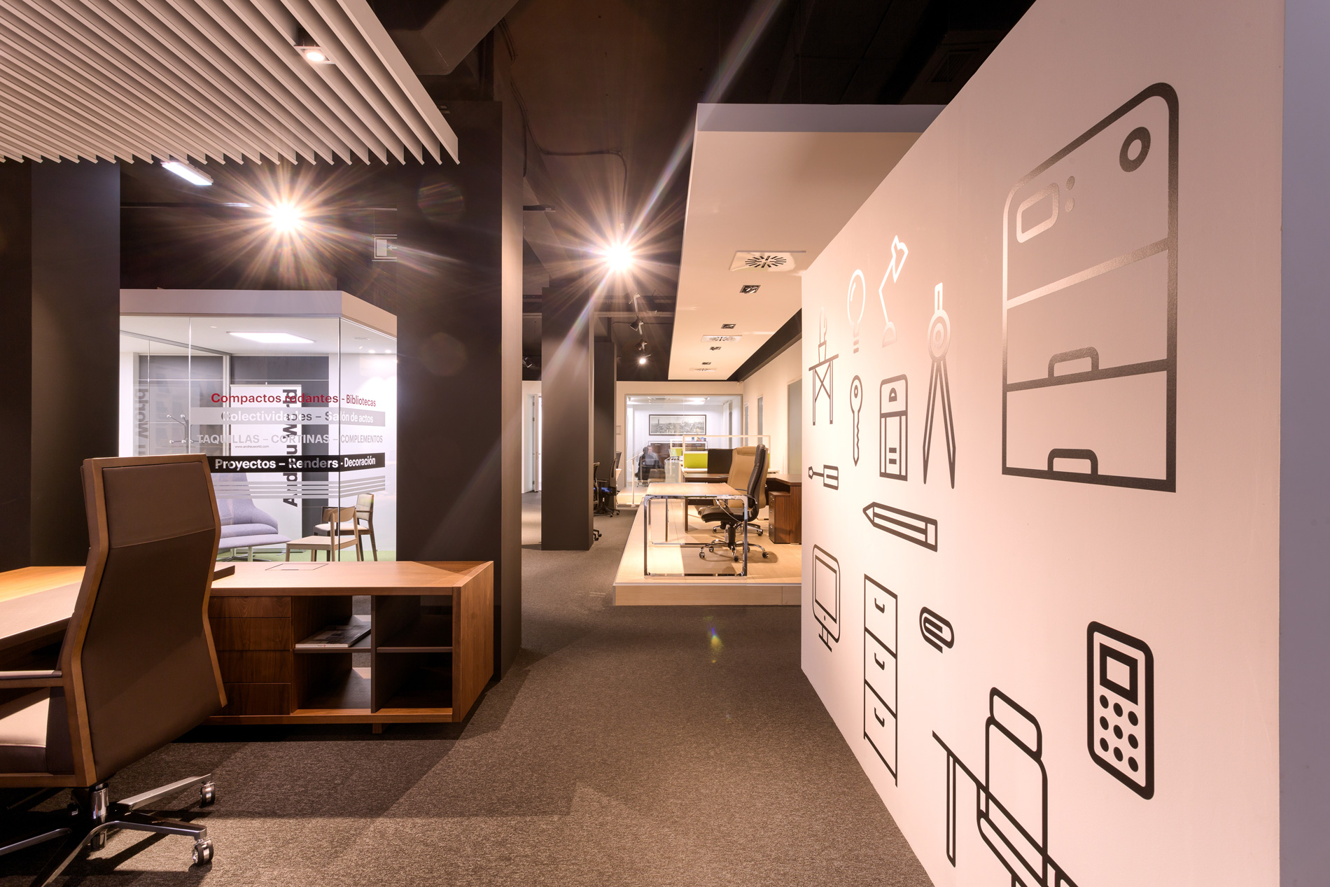 Proyecto de interiorismo del nuevo showroom de Torres oficinas, empresa dedicada durante más de 35 años al equipamiento e instalación integral de oficinas.