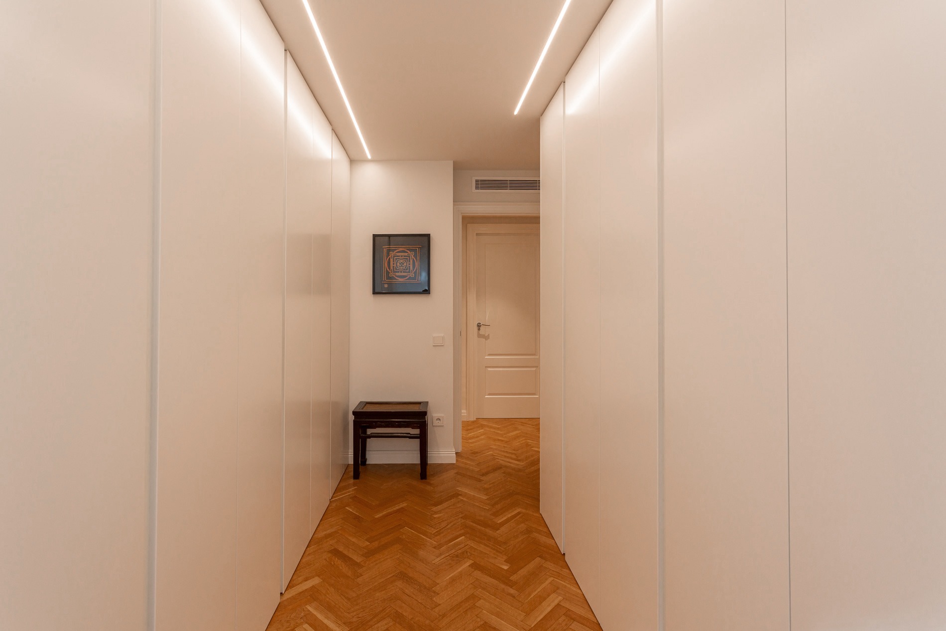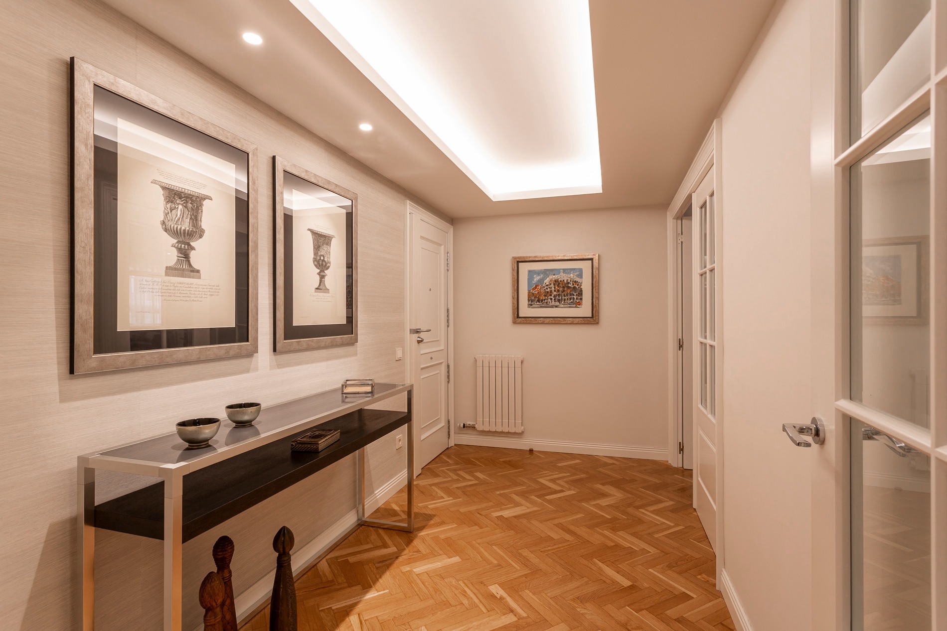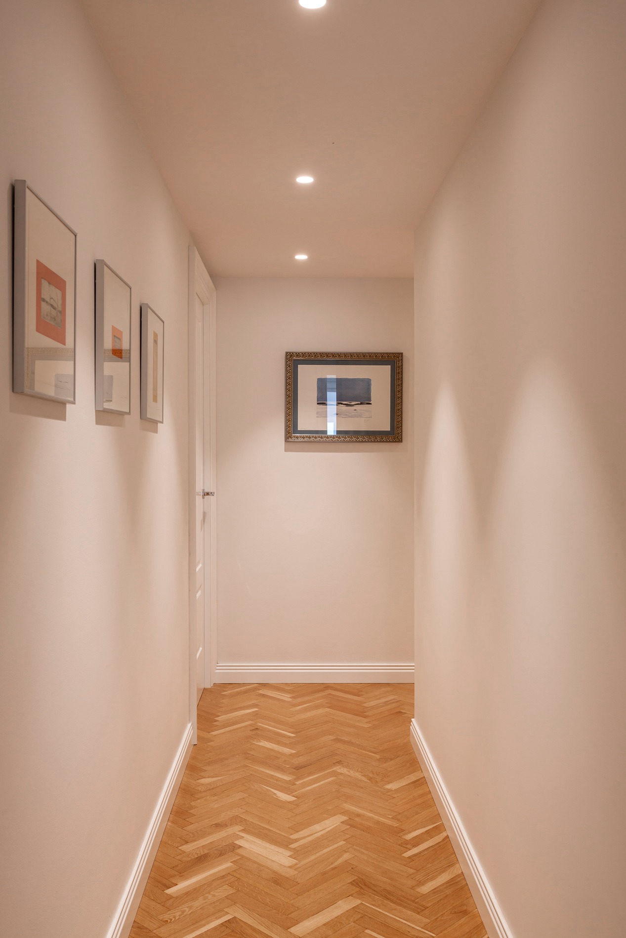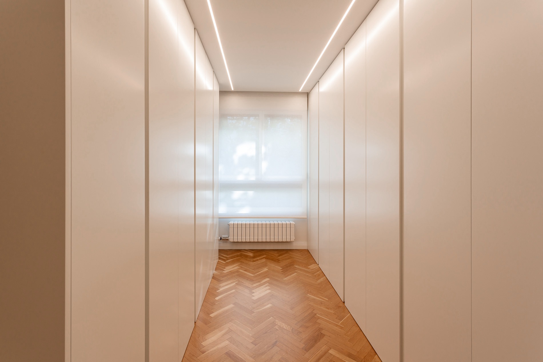 Para finalizar también hemos diseñado los espacios con diferentes juegos de molduras y foseados, generado así un ambiente cálido y acogedor.