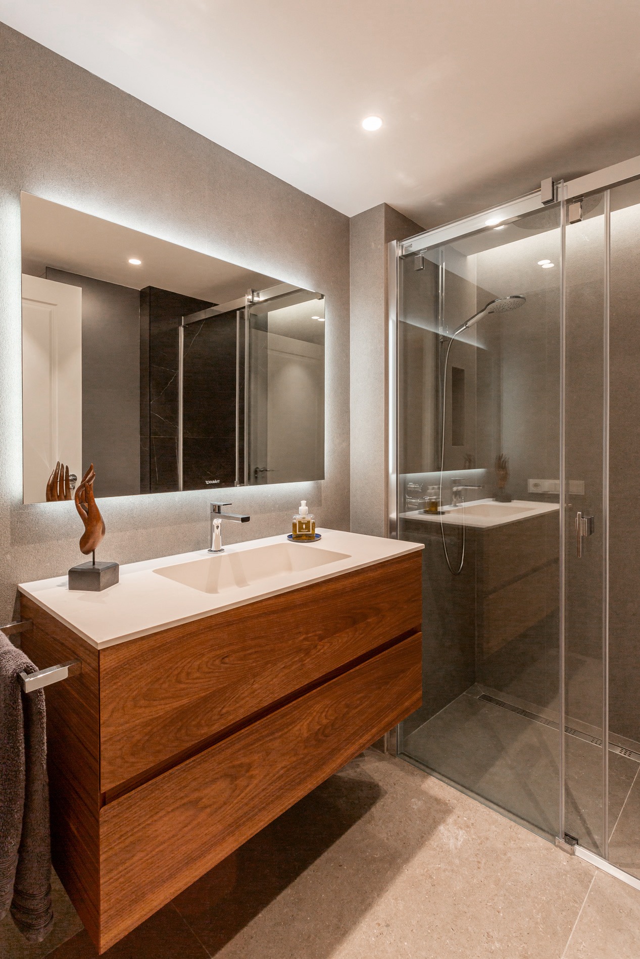 En la reforma ademas de la renovación completa de las instalaciones, hemos remodelado los tres baños con alicatados de gran formato, dejando unos espacios modernos y prácticos pero dotados de un carácter especial.